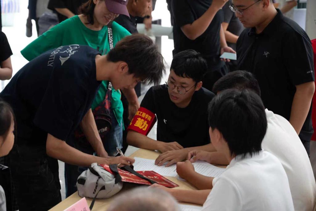 学院对此次迎新工作高度重视,早在开学前便多次召开筹备会议,从流程设计到细节保障反复打磨。迎新期间,全体学工老师们提前到岗,梳理报到流程、检查物资准备;学生志愿者们以最饱满的状态投入服务,他们身着统一志愿服,或举着学院指引牌站在校园入口,或穿梭在报到点与宿舍之间,成为迎新现场最亮眼的“红色风景线”。师生协同作战,用高效有序的配合,为新生开启校园新生活筑牢了坚实的“护航屏障”。