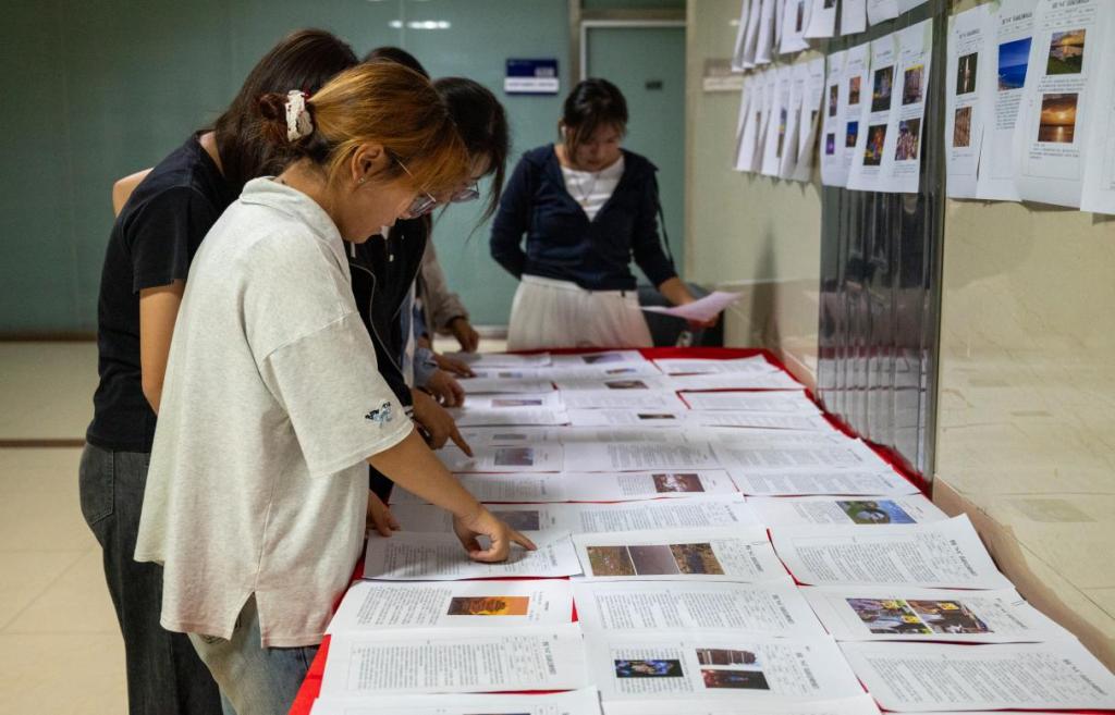 展览现场布置精致有序,展区划分清晰,刚开展便吸引了大批师生驻足观看。体育运动心得展区内,学生们用文字与运动影像记录暑期锻炼历程:有同学分享坚持骑行环岛的挑战与成就感,也有同学记录篮球集训中从“替补”到“主力”的蜕变,字里行间满是对运动的热爱;感恩父母一件事展区格外暖心,家务记录视频、亲子合照搭配文字讲述,还原了学生帮父母收拾家务、筹备家庭聚餐等温情场景;最美瞬间展区里,山间徒步时的日出、志愿活动时的笑脸等,定格了暑期生活的精彩与青春的活力;读书笔记展区中,从专业书籍的深度解读到经典名著的感悟随笔,字迹工整的笔记与图文批注,展现了学生们暑期深耕知识的专注;社会调查展区则汇聚了学生们的实践成果,每份报告都包含详实的数据与独到的思考,尽显新时代青年的社会责任感。