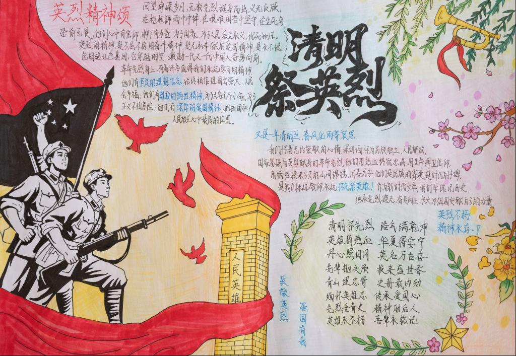 本次活动以清明节为背景,以缅怀追思先烈为主题,同学们主动查阅革命史料,深挖英烈感人事迹,将革命历史、英雄故事与当代青年使命担当融入创作。大家巧思版面布局,注重色彩搭配与创意表达,以细腻笔触勾勒英烈形象,用鲜活文字赞颂英烈精神。同学们在沉浸式创作中重温峥嵘岁月,深刻感悟英烈精神时代内涵,坚定传承红色薪火、勇担时代使命的信念。