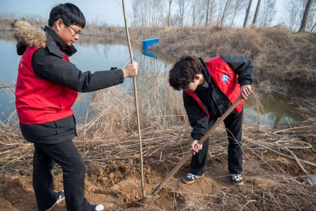 春染大地,万物生发。在第46个植树节到来之际,恰逢学雷锋志愿服务月,能源与建筑工程学院组织学生志愿者联合宋官屯街道办事处,共赴张官屯池塘沿岸开展义务植树活动,以实际行动为生态文明建设增添新绿,以躬身劳动践行新时代雷锋精神。